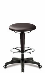 LABORATORY STOOL, WITH STOP AND GO - CASTORS, SEAT HEIGHT 600 - 870 MM, EXTRA LARGE SEAT WITH A DIAMETER OF 400 MM, WITH SYNTHETIC LEATHER SKAI IN BLACK, EASY TO CLEAN, WASHABLE, IMPERVIOUS TO DISINFECTING AGENTS, POLYAMIDE BASE, HEIGHT ADJUSTABLE C
