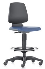 LABORATORY CHAIR, EASY TO CLEAN, WASHABLE, RESISTANT TO DISINFECTANTS, JOINT-FREE THANKS TO HYGIENIC DESIGN, ROBUST, CLOSED SEAT SHELL IN COLOUR ANTHRACITE, SEAT UPHOLSTERY IN BLUE ARTIFICIAL LEATHER, ANTIBACTERIAL, BACKREST MADE OF PLASTIC, INNOVATI