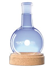 Flask, round bottom, borosilicate glass, clear, 100ml, NS 29/32, OD 64mm, height 105mm, very good chemical resistance, high temperat ure resistance, minimal thermal expansion giving relatively high resistance to temperature changes