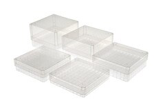 use Expell freezer boxes to store cryo tubes in sizes from 0.5 to 5 mL. Expell cryo boxes are suitable for storage